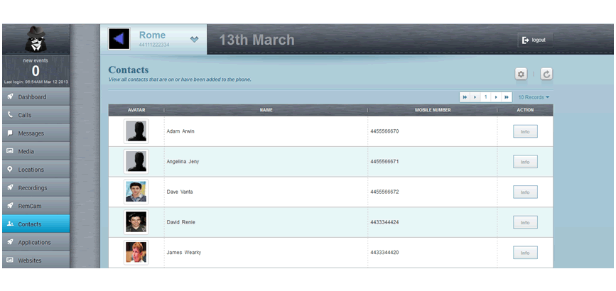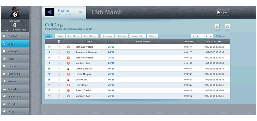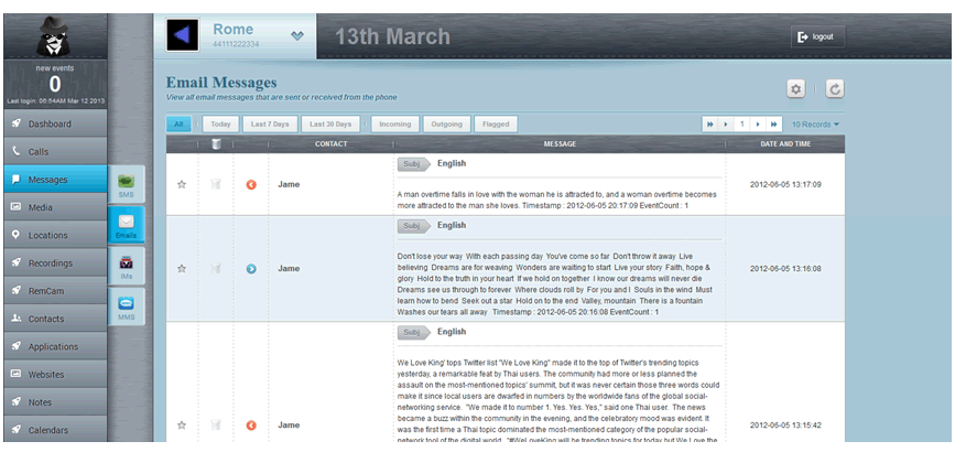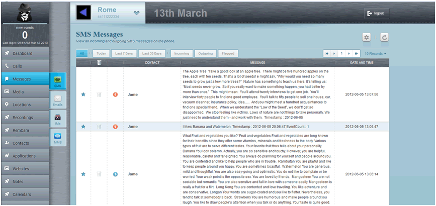 You can view the details of incoming and outgoing SMS message, the corresponding number, contact, message content, and much more... -